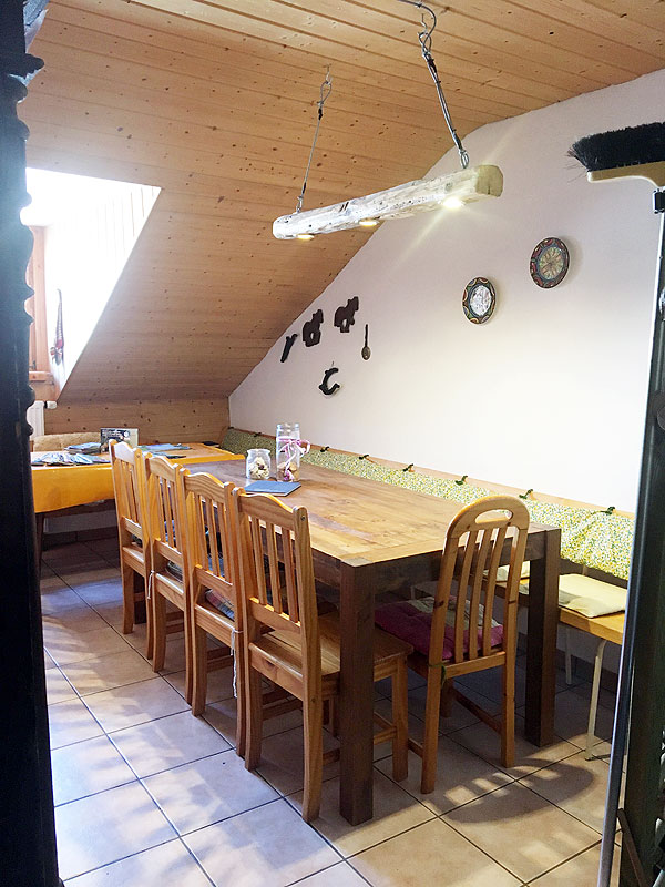 Der separate Eingang zu Ihrer Ferienwohnung liegt außerhalb des Innenhofes, direkt an der Zufahrt zum Parkplatz für Feriengäste und dem Kinderspielplatz. So können Sie jederzeit ungestört vom Hofbetrieb Ihre Ferienwohnung betreten.Beide Ferienwohnungen werden vom gemeinsamen Aufentshaltsraum begangen. Dieser Raum kann zum "gemütlichen Zusammensitzen" der Feriengäste genutzt werden oder als "Spielzimmer" wenn es draußen mal regnen sollte.